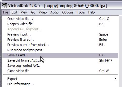 VirtualDub is of course to save as AVI file. Before you do, you'll want