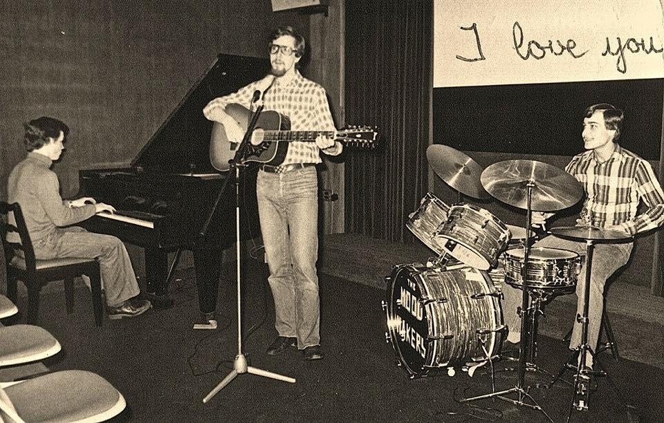 In 1978, when I was in high-school, I played the piano in a 3-man band, and before we split for college, we decided to make a recording. We recorded a bunchof music pieces from our repertoire. I was a lot into Jazz (inspired by Oscar Peterson), and Ragtime (Scott Joplin and others). But we also did play other pieces. We got access for free to a professional sound recording studio, our band was called the Moodmakers. We were able to have free access to this pro recording studio because they had just acquired a new mixing table and needed various sources of sounds and noises in order to experiment with all those new glittery switches, sliders, buttons, toggles and switcheroos... we essentially came in for over 2 months, once a week, to make noise! We didn't quite know how much they recorded. Nor did we realize that our guitarist came back regularly to record extra voices, more guitars, xylophons and kazoos, and in some cases made extra percussion noises with his lips and tongue.... I was starting to think he knew how to speak the language of the Maasai or something similar with those fascinatingly difficult clickety sounds... in some of the recordings we turned out sounding like an 8-person orchestra :-)
