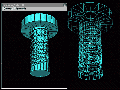Click the other object (the plain screw with head) and wait a short while. Ok, wait a long while if you're on a 166 MMX with just 64 MB RAM, but if you are on a modern-day system with 500+ MHz clock speed and 128 MB or more of RAM, you should not run out of memory or go virtual, and in a short while, Amapi will display the first of a series of results. You can cycle through them all with the +/- keys. The first one I got looked like this: (click the image at left for a larger view)