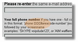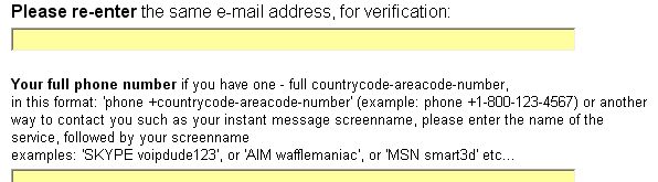 rare but there have been a few instances. This is what we know so far: In the registration form, after the second entry of the email, there's a few lines of text starting with "Your full phone number..." and there is one part on the line under it that should read like this: in this