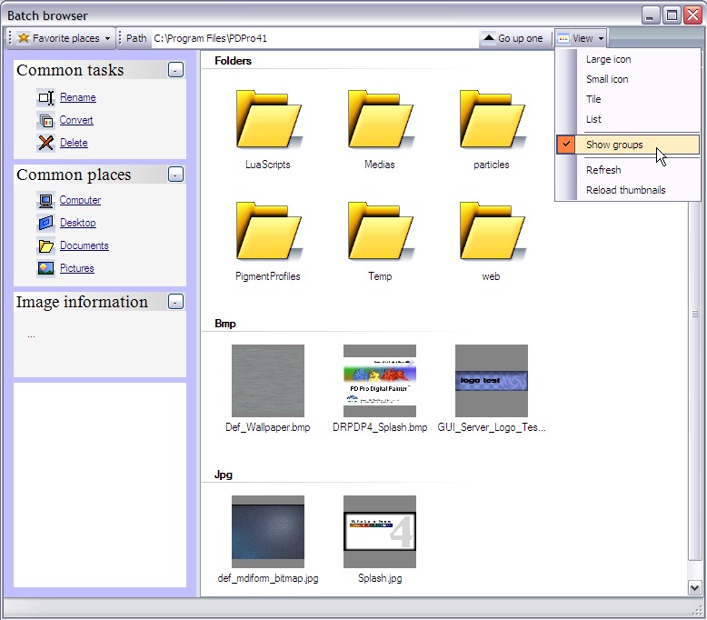 One more option in the File menu is the batch browser. Use it to