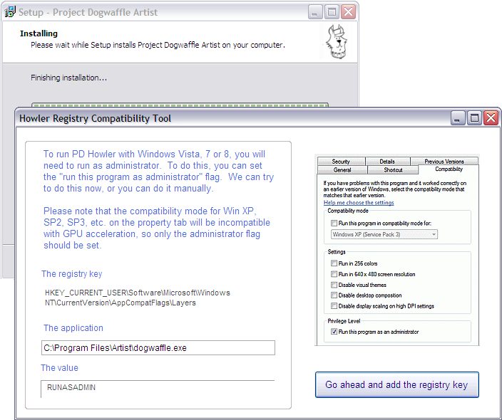 downloaded a zip archive named something like this: Install_PDPro_Artist_8-2c.zip We recommend not opening the file directly from the linkn you saw in the email you received. Instead, save the file to a known local folder or the desktop. Then you can extract the installer and other content from the zip archive. We recommend that you use the regular Windows built-in extraction feature, rather than third-party compression/uncompression tools, which on occasion have caused problems. You should just right-click the zip file and select Extract All. That will extract the files into a new folder, such as 'Install_PDPro_Artist_8-2c'. You can then go down into (open) this folder and see the installer and a README file: ![]() Of course, if you know what you're doing, other steps and methods may work just fine too. Please take time to read the README file. A note for users of Windows XP: we have tested and found that PD ARtist 8.2c works on Windows XP with SP3. If you can't make it work and you use SP2, you may need to upgrade to SP3. If you don't know which service pack you have, check the 'System' information from the Control Panel: ![]() < click image to enlarge If you have Windows Vista or Windows XP, you won't be able to use GPU acceleration. It should be disabled for you. However, even on some Windows 7 configurations, something may not be at the needed level to allow GPU support. In that case, you can manually disable GPU use in Dogwaffle, once it is installed. For the best experience with GPU, use Windows 8, or Windows 7, with a great graphics chip or graphics card. Read more details about the GPU When you're ready, launch the installer. You can usually double-click the file, or right-click it to select 'Open'. On some systems, you may need to run it as Administrator. Use the adequate option if normal installation fails, or learn about your UAC settings and whether your antivirus is preventing part of the installation. If you have CorelDraw X or similar with license control service running on your system, it may also interfere with or prevent installation. See Howler Help for assistance, or the F.A.Q. |