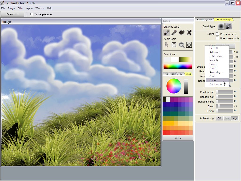 settings tab. The default mode is a replacing mode. The Smear and the