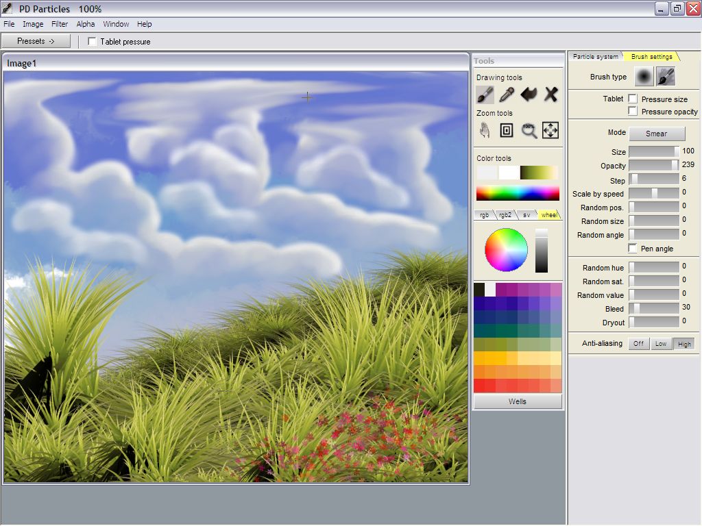 use the Bleed slider in the Brush settings to set the color bleed to a