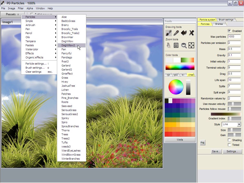 Switch back to one of the Particle brushes. For example, the Dogwillow