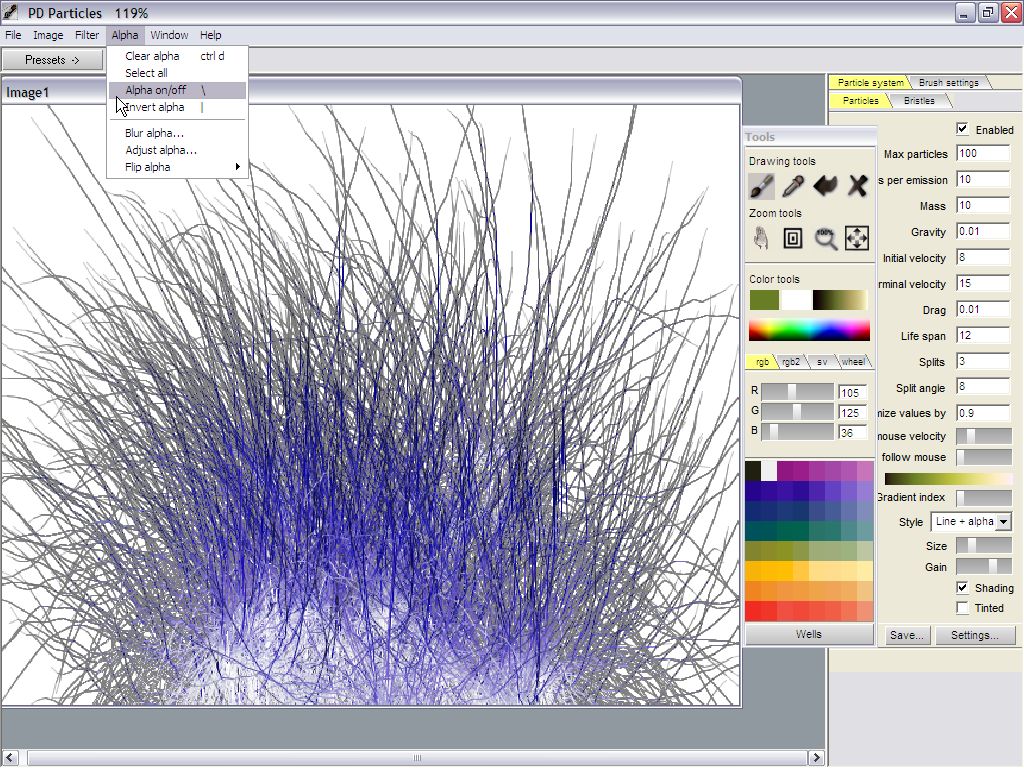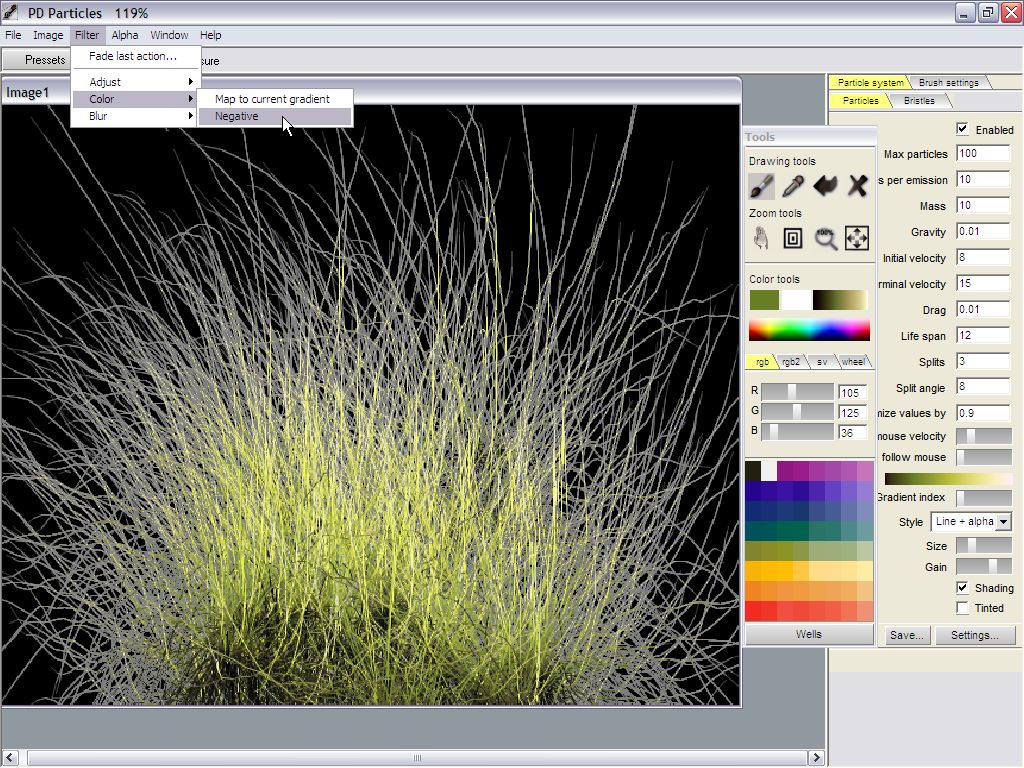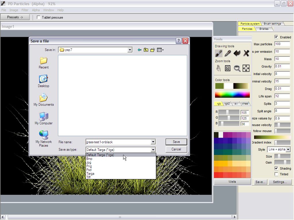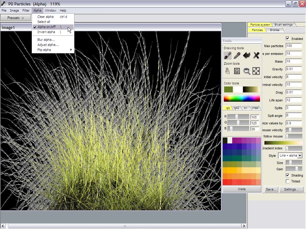 So, here we are, in PD Particles, having painted a tuft of long grass.