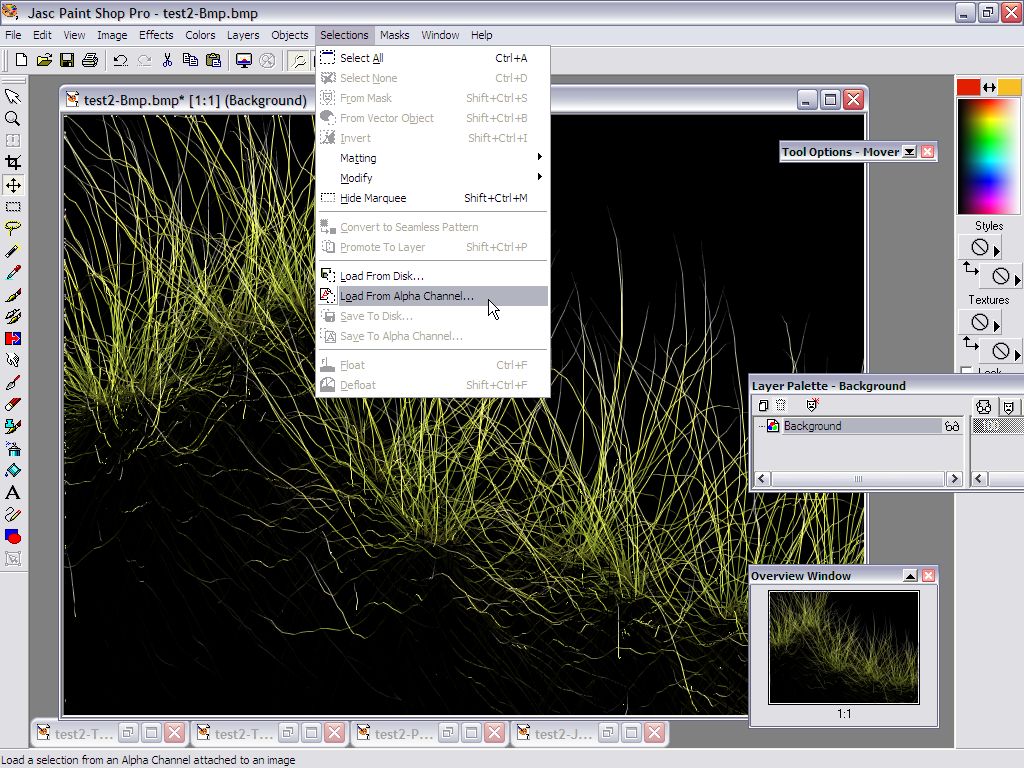 color image of the grass but also a selection mask (alpha channel),