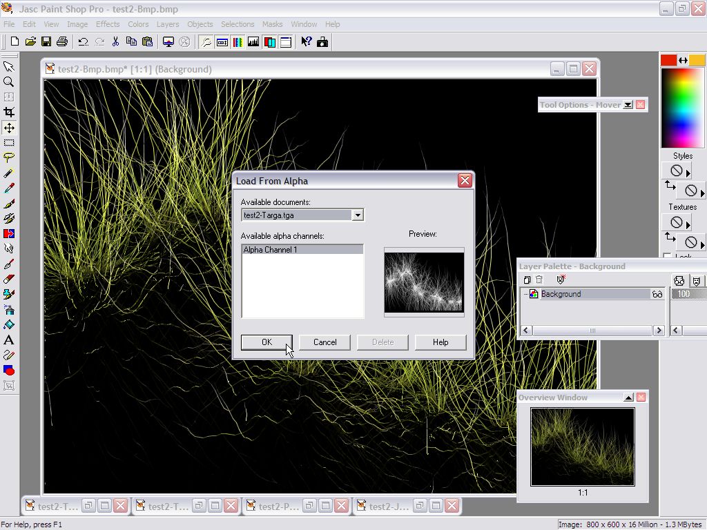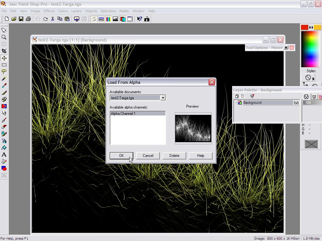 Alpha channel 1 was found and available for defining a selection mask.