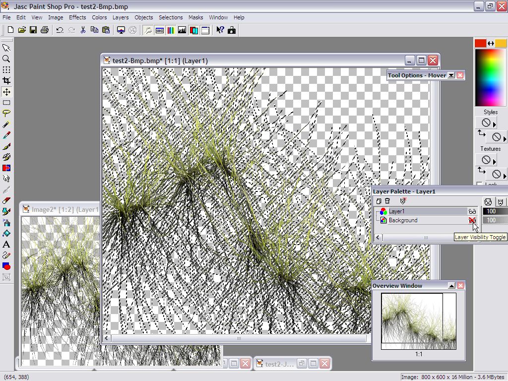 anti-aliased pixels along the edges of the grass to also be erased but