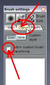 The checkbox "Allow custom brush transforms" is originally unchecked.
