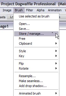 The Brush manager shows the stored image of the brush, and gives access