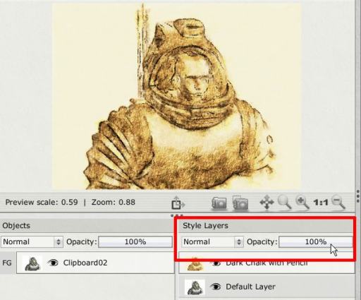 value box showing the 100% opacity. It is a