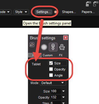 - using a graphic pen from a tablet, you may change the brush size based on the pressure that you apply while painting