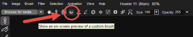 - The brightness of the swap image controls the scale of your brush.