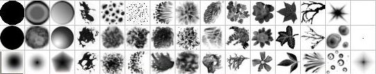 30 to 40 or so brushes. When you unzip (extract) the files they should