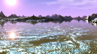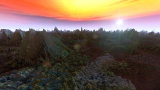 Here are some renderings with created from the above terrain, using Project Dogwaffle's Puppy Ray: (click thumbnails to see larger image)