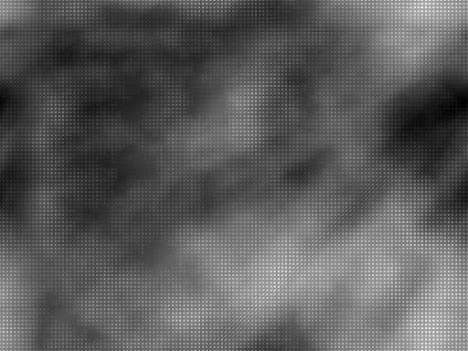 Now let's make a slightly fancier elevation map. Here we started from the same as the prior grid pattern but then also added a plasma noise pattern on top. There are many modes to combine them, such as Multiply, Less than, Complement... don't forget to make it seamless too. (Image menu: > Make Seamless) so that it will nicely tile in Puppy Ray.