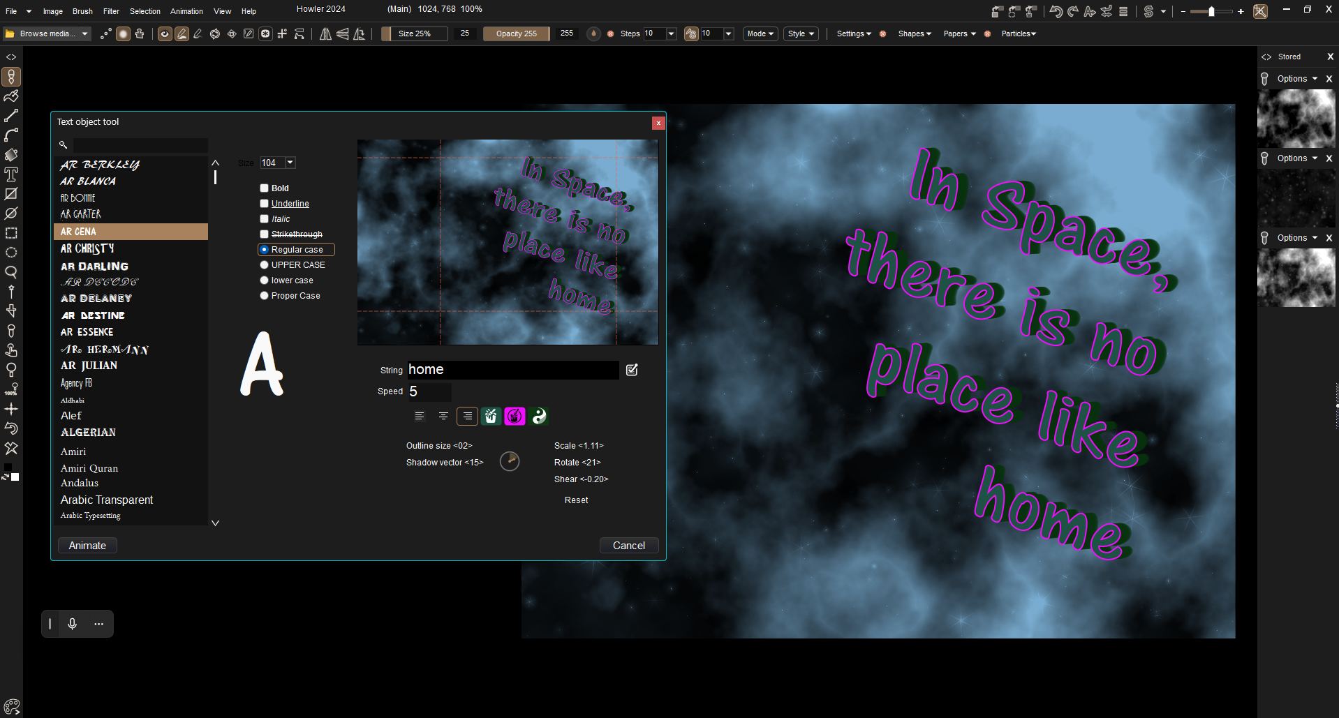 such as the WatercolorFX tool, Text crawl, and more.