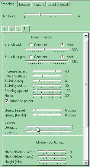 - DXF, OBJ and 3DS export of your trees Branches parameters are : Some parameters can be inherited from the parent's